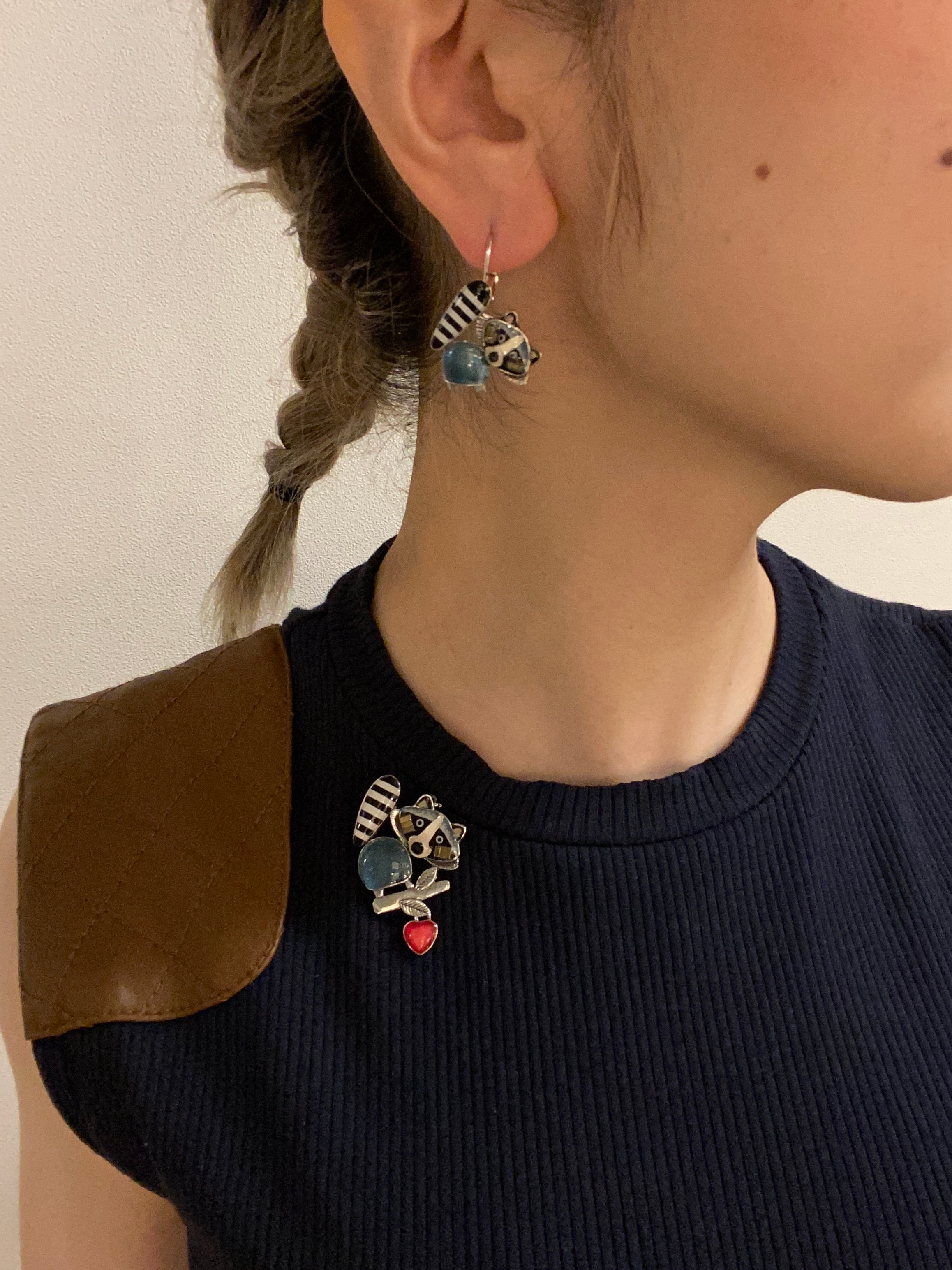 ピアス・しっぽが揺れるタイプのブローチは別売りです。