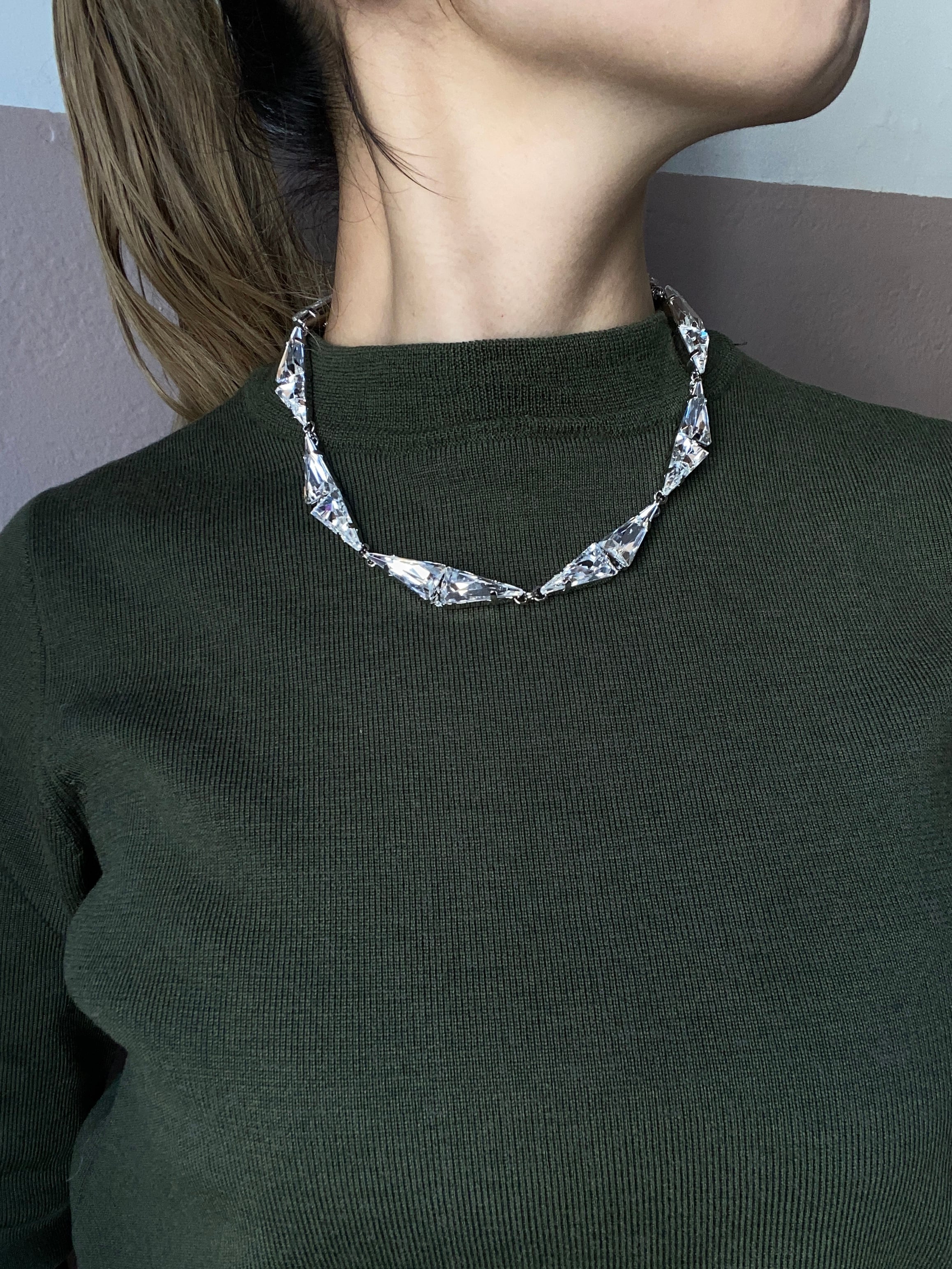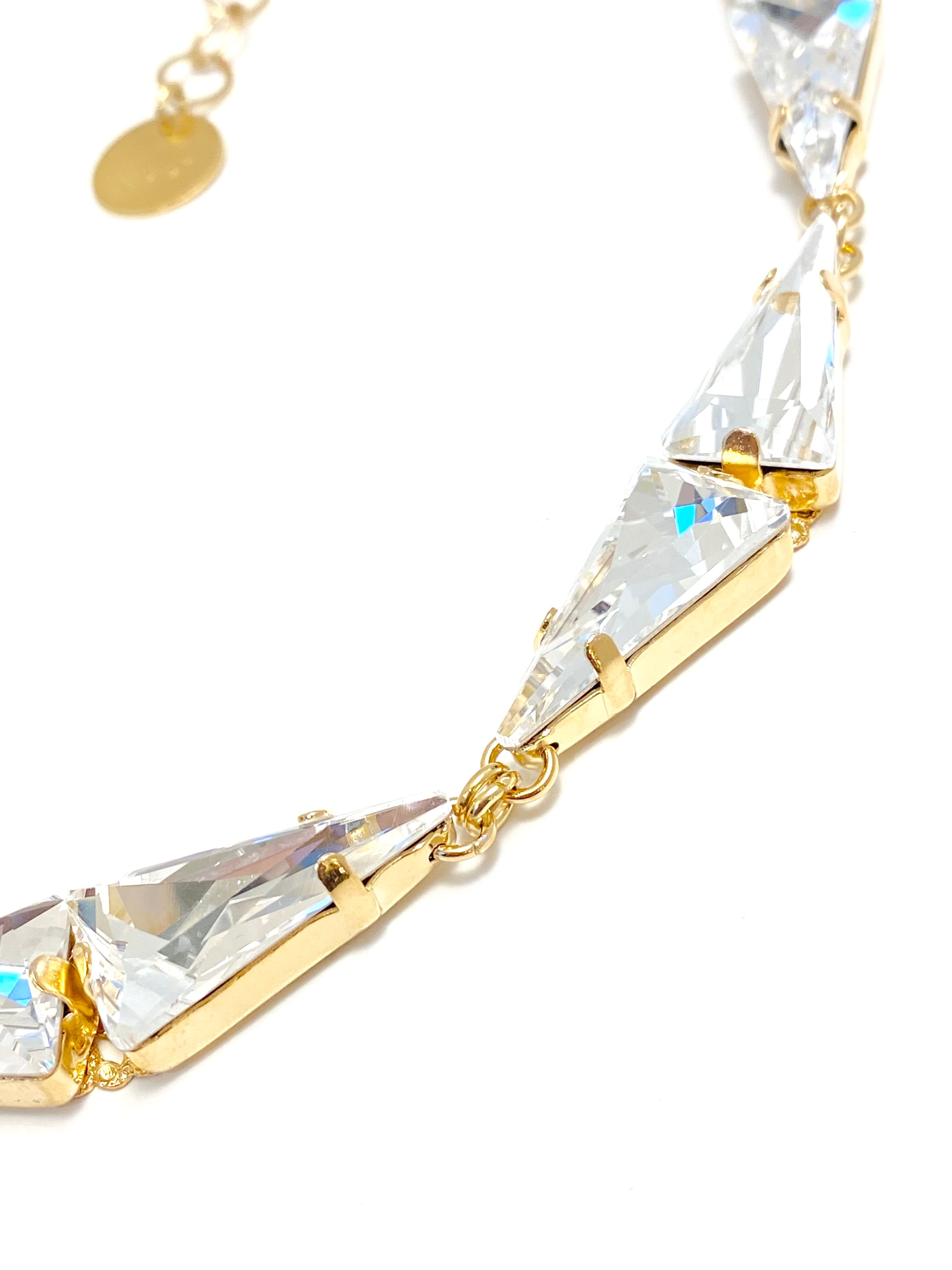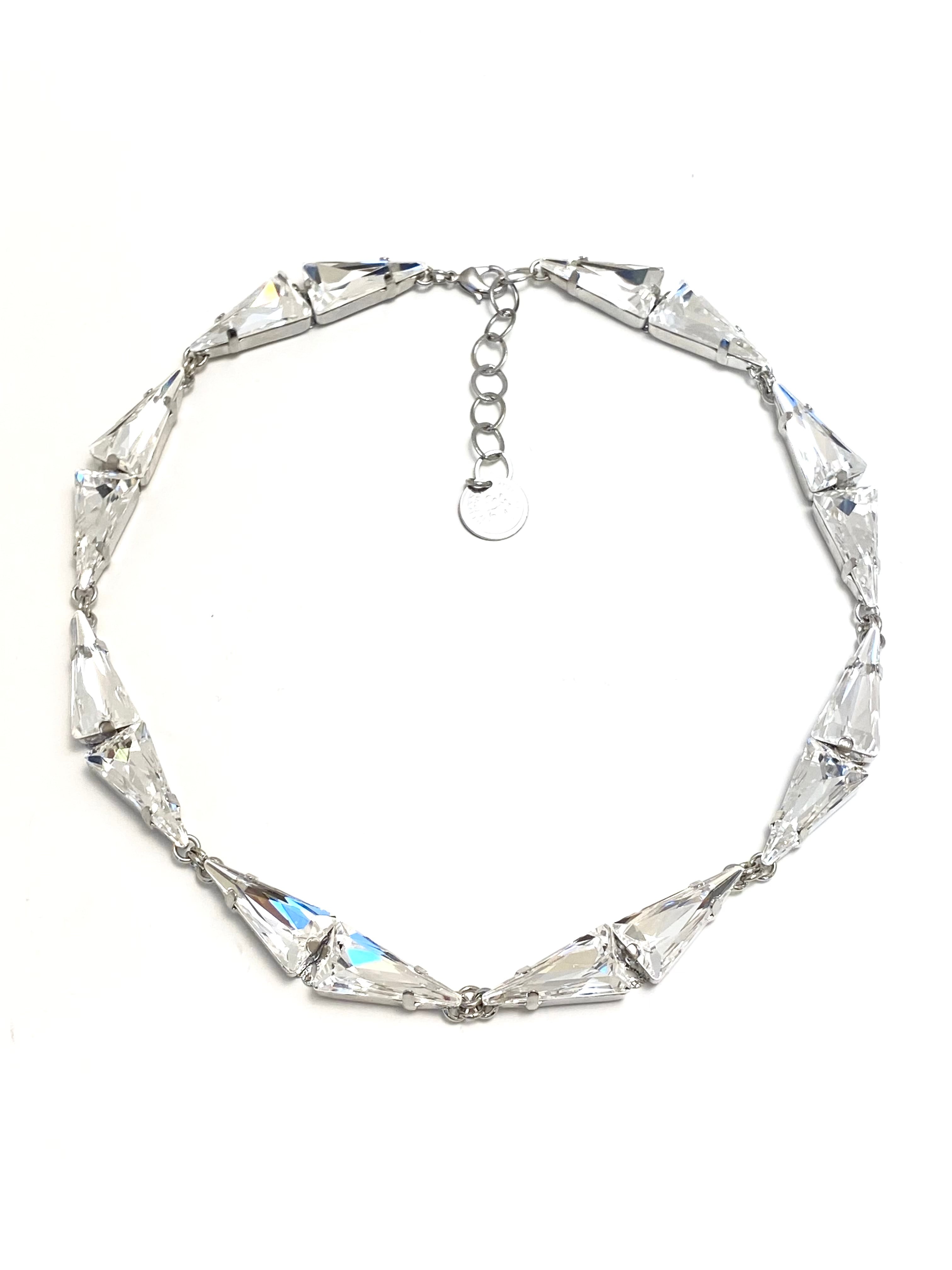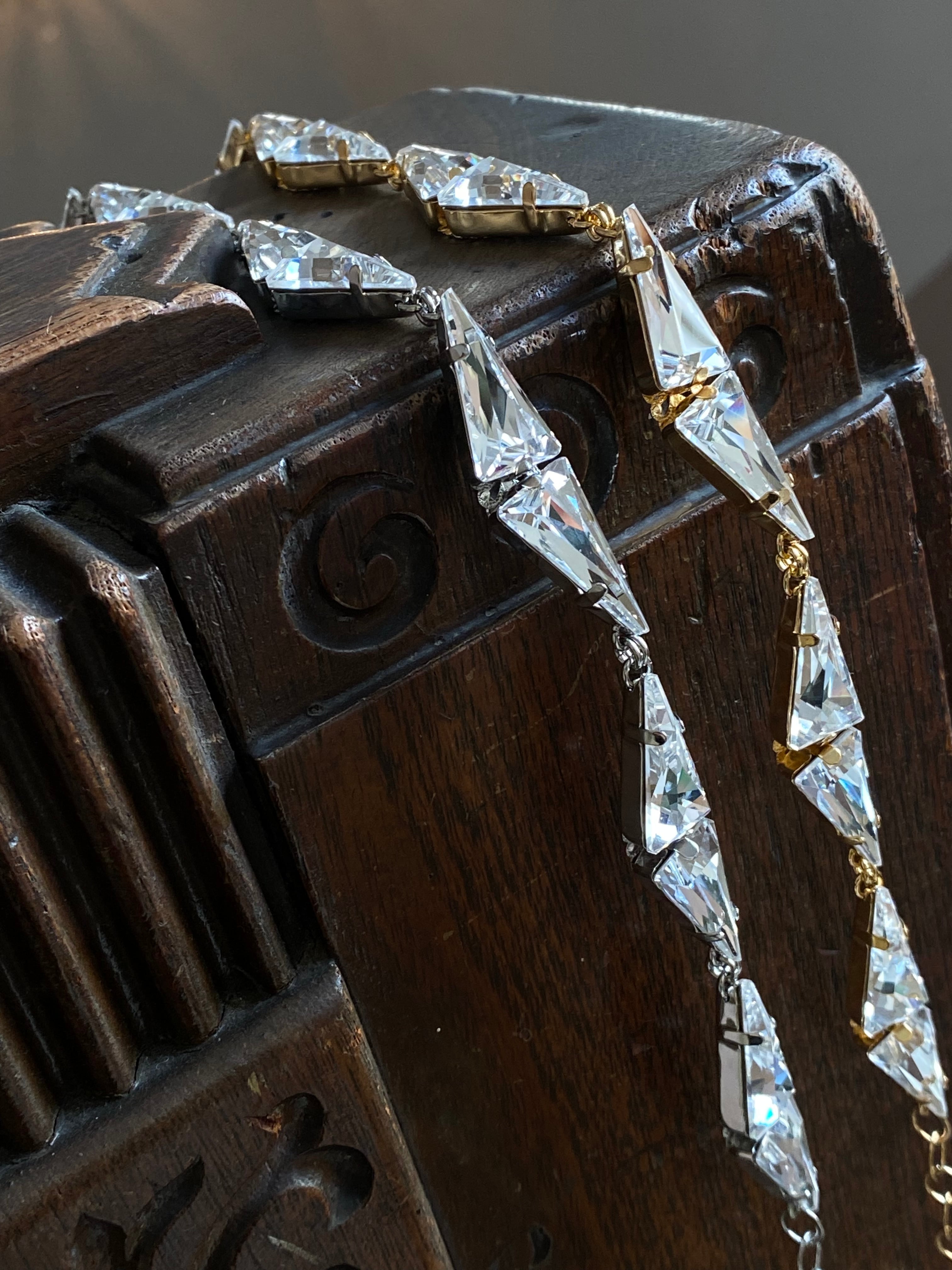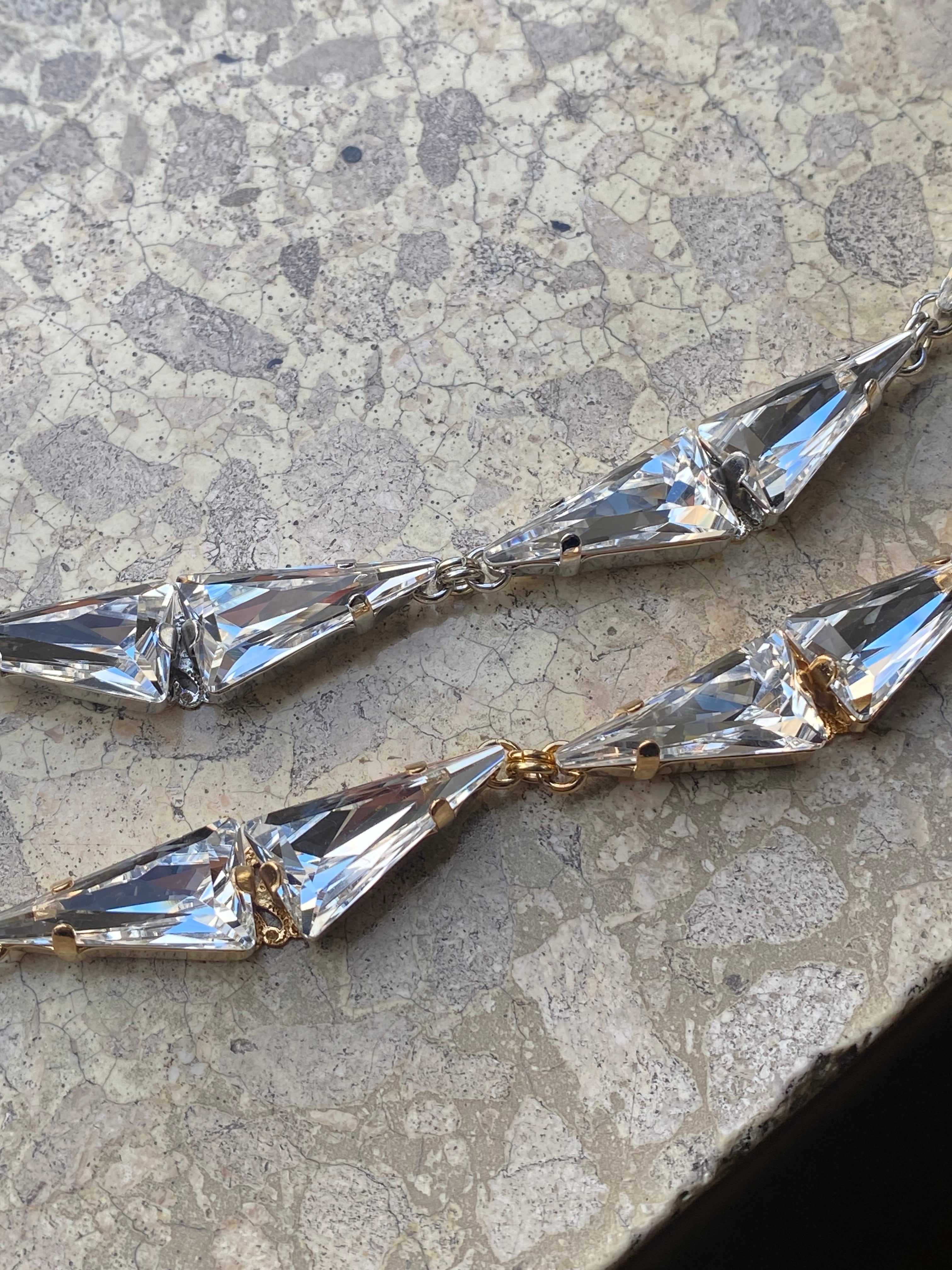 三角形のスワロフスキーのみで構成される幾何学的なデザインです。