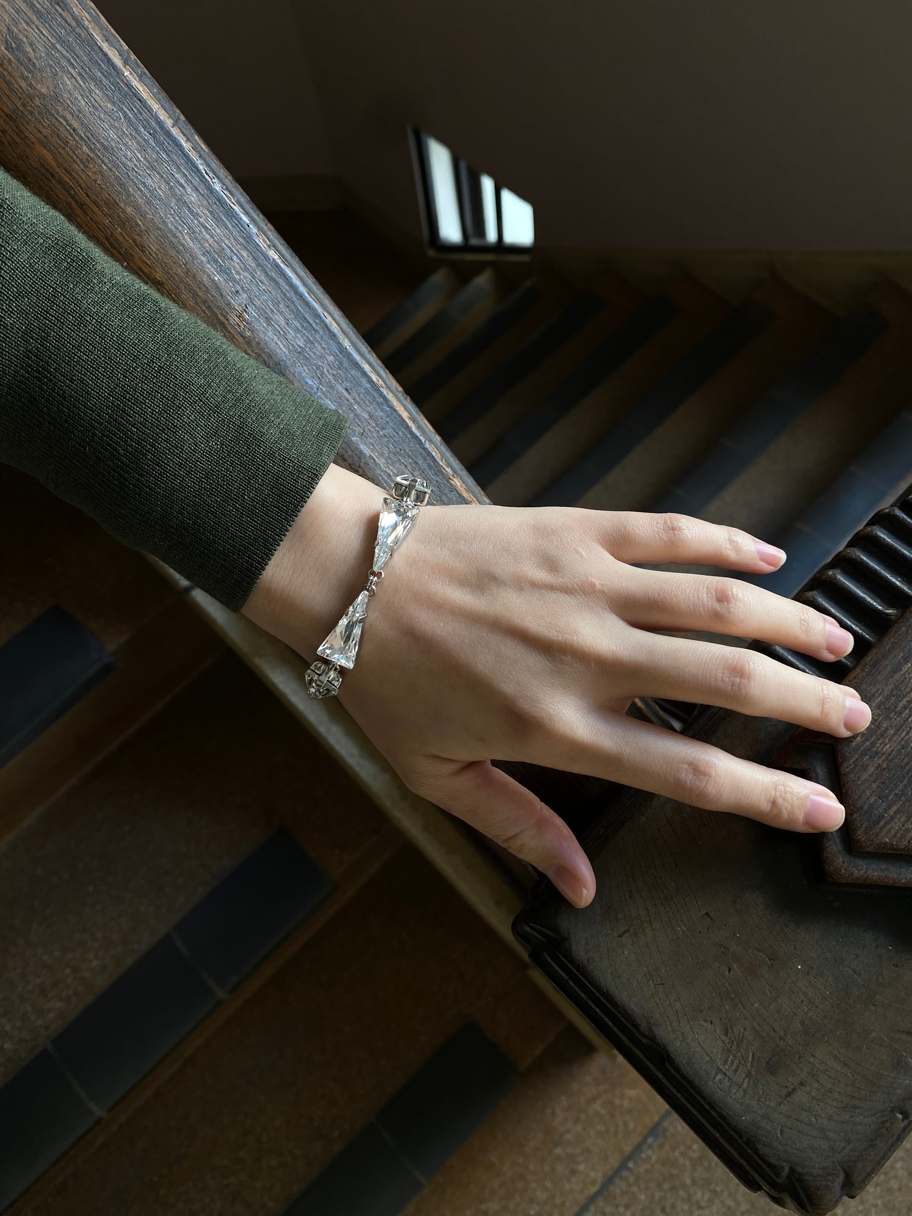 三角形のスワロフスキーのみで構成される幾何学的なデザインです。