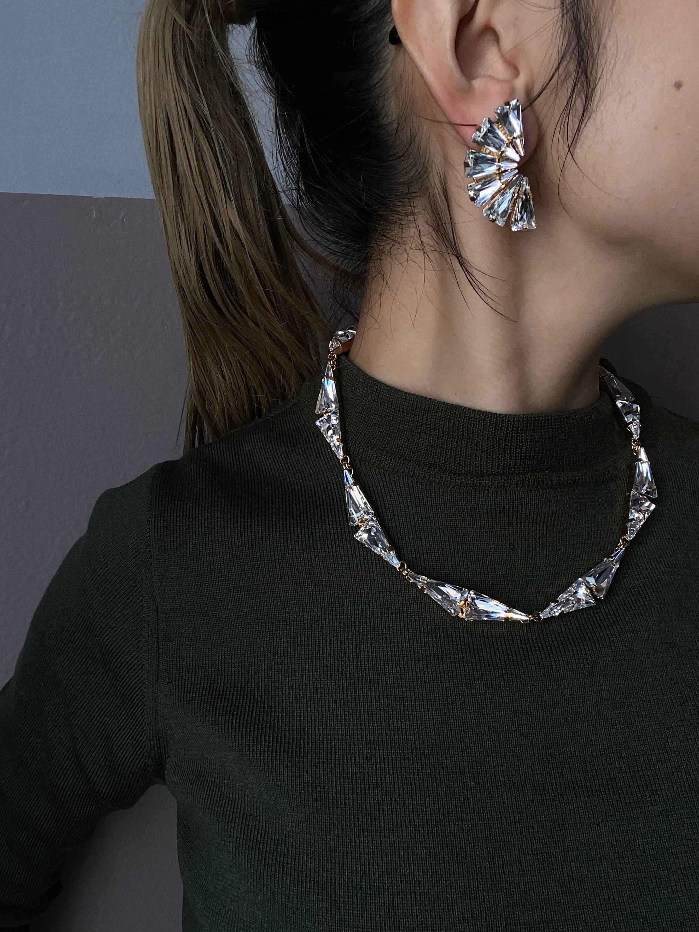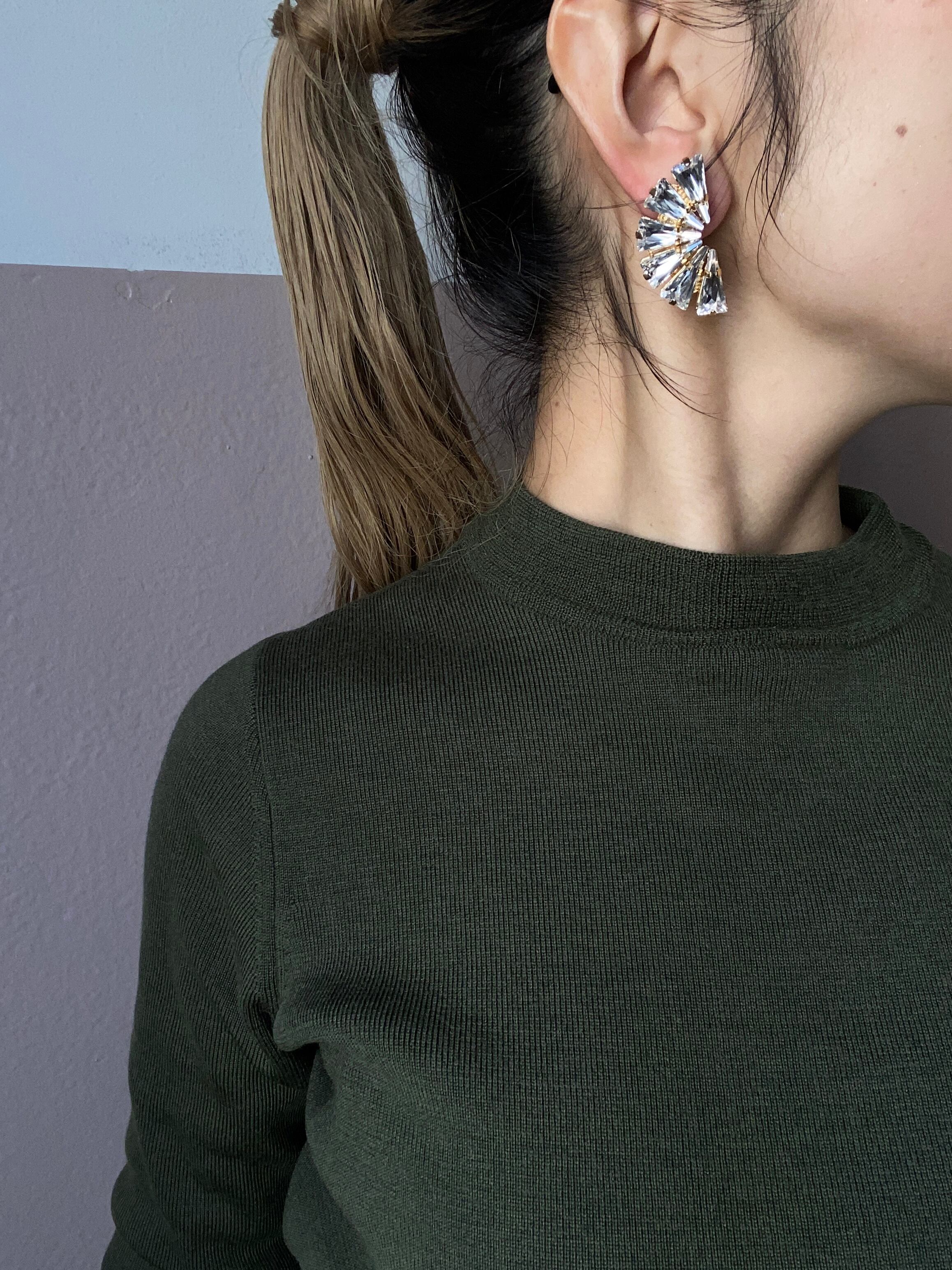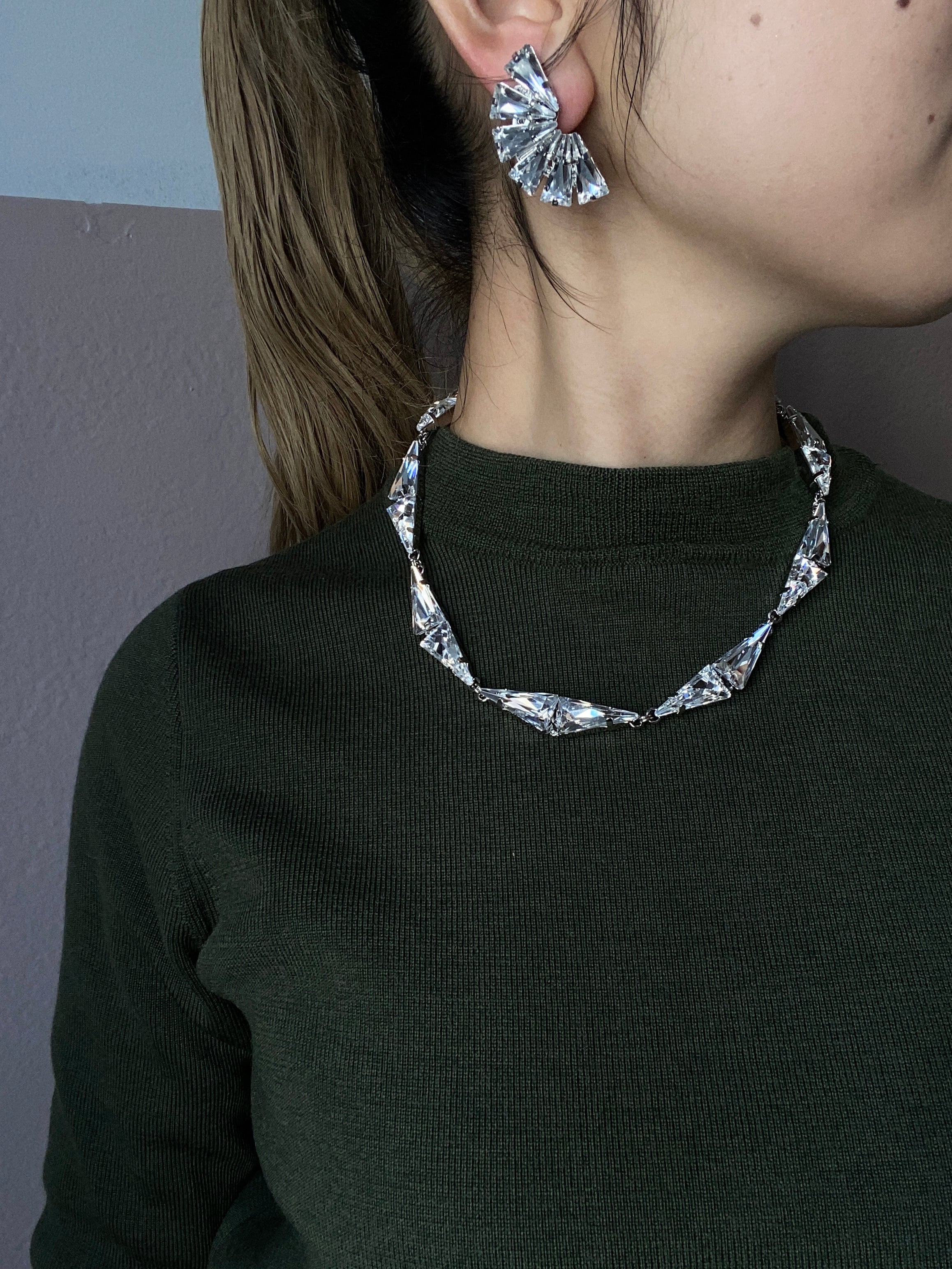 三角形のスワロフスキーのみで構成される幾何学的なデザインです。
