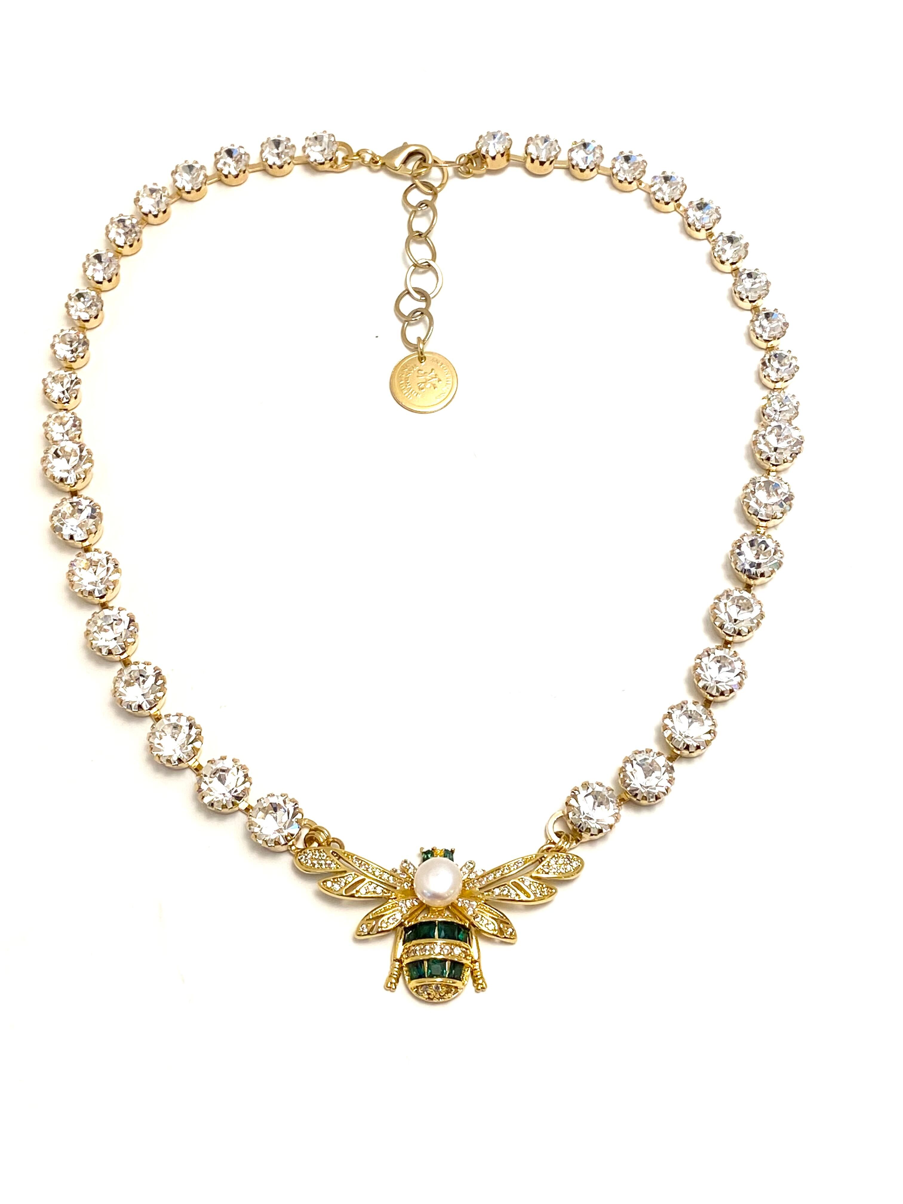 ファインジュエリーのような緻密で繊細なミツバチモチーフを、グラデーションに配置したクリスタルで繋いだデザイン。