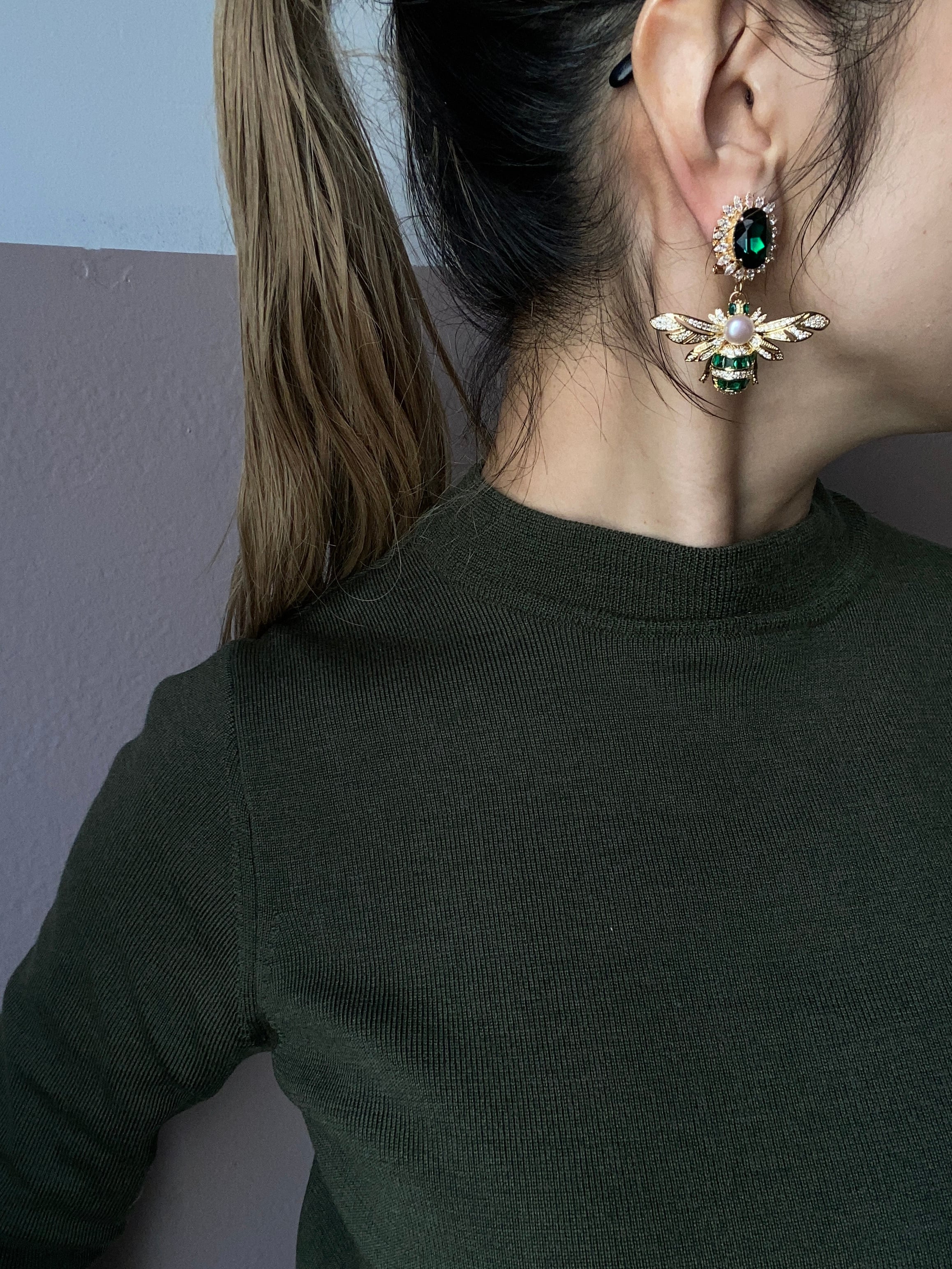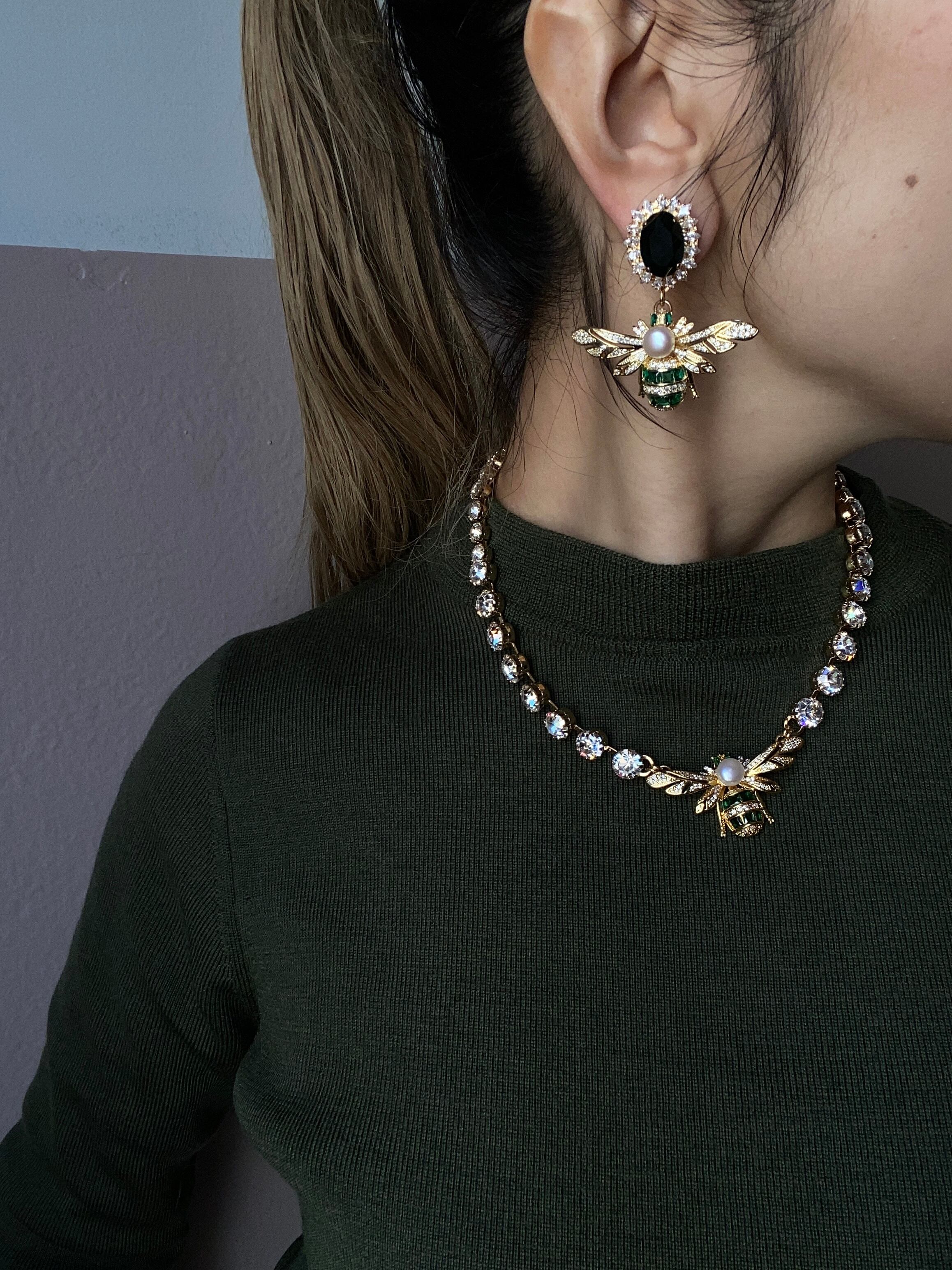 クラシックなオーバルモチーフから、ファインジュエリーのような緻密で繊細なミツバチモチーフが揺れるデザイン。