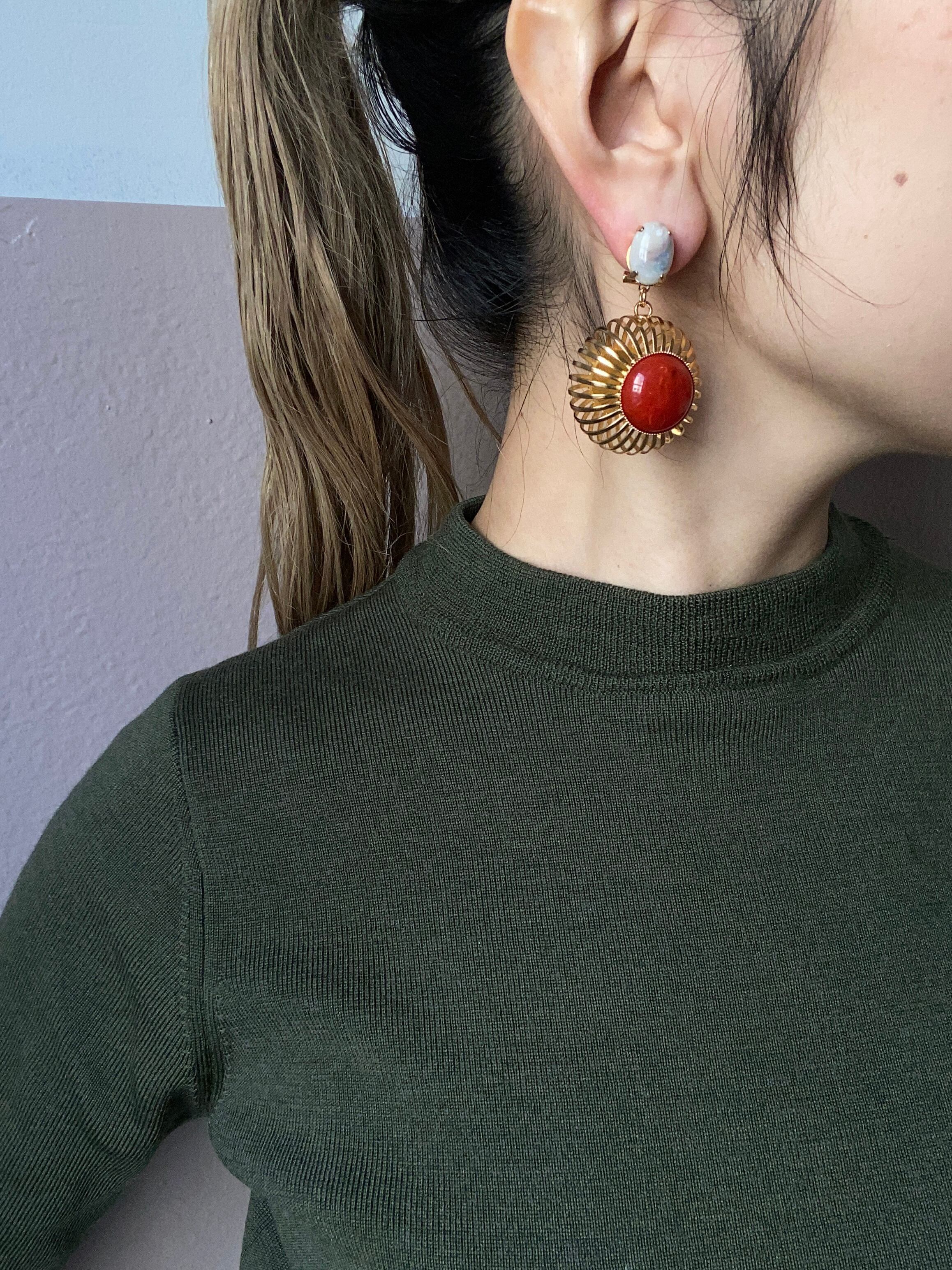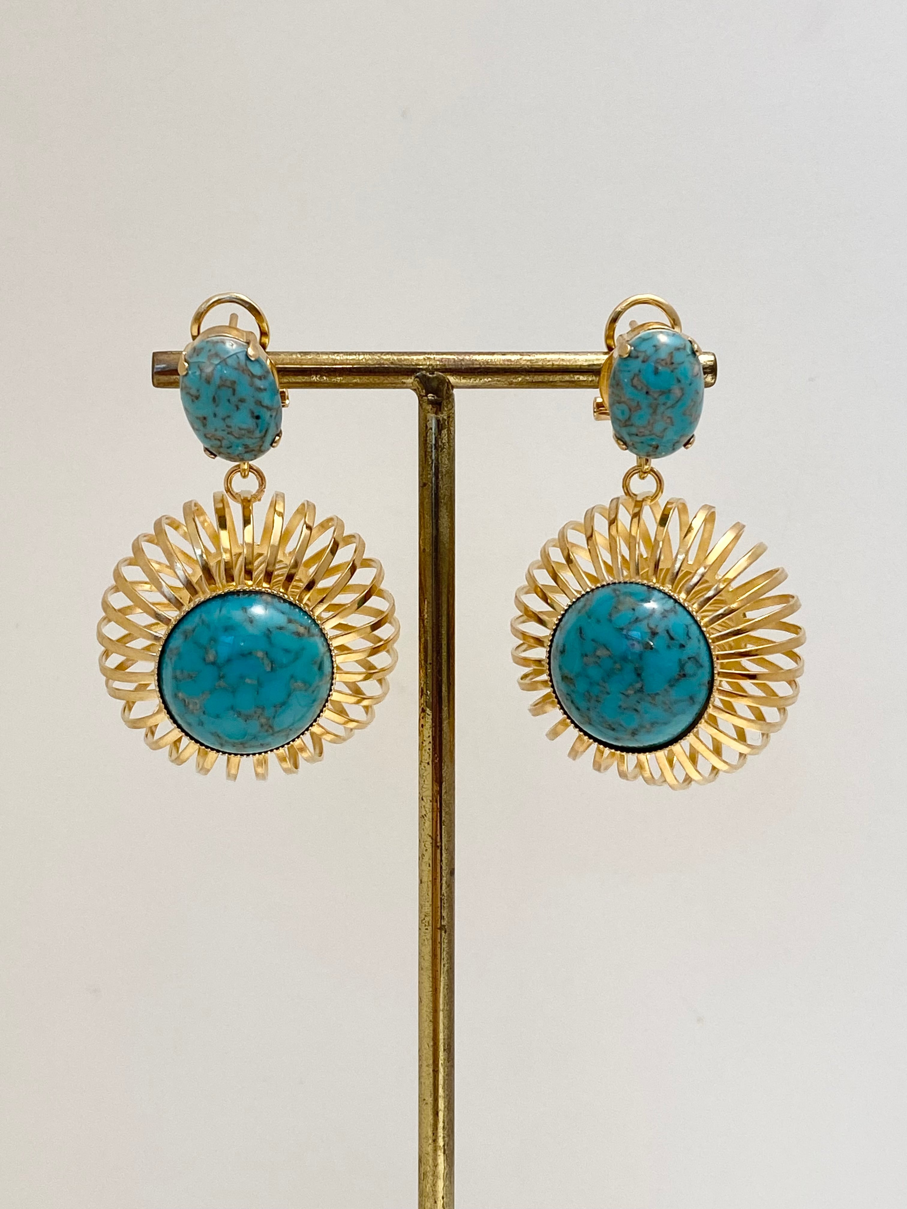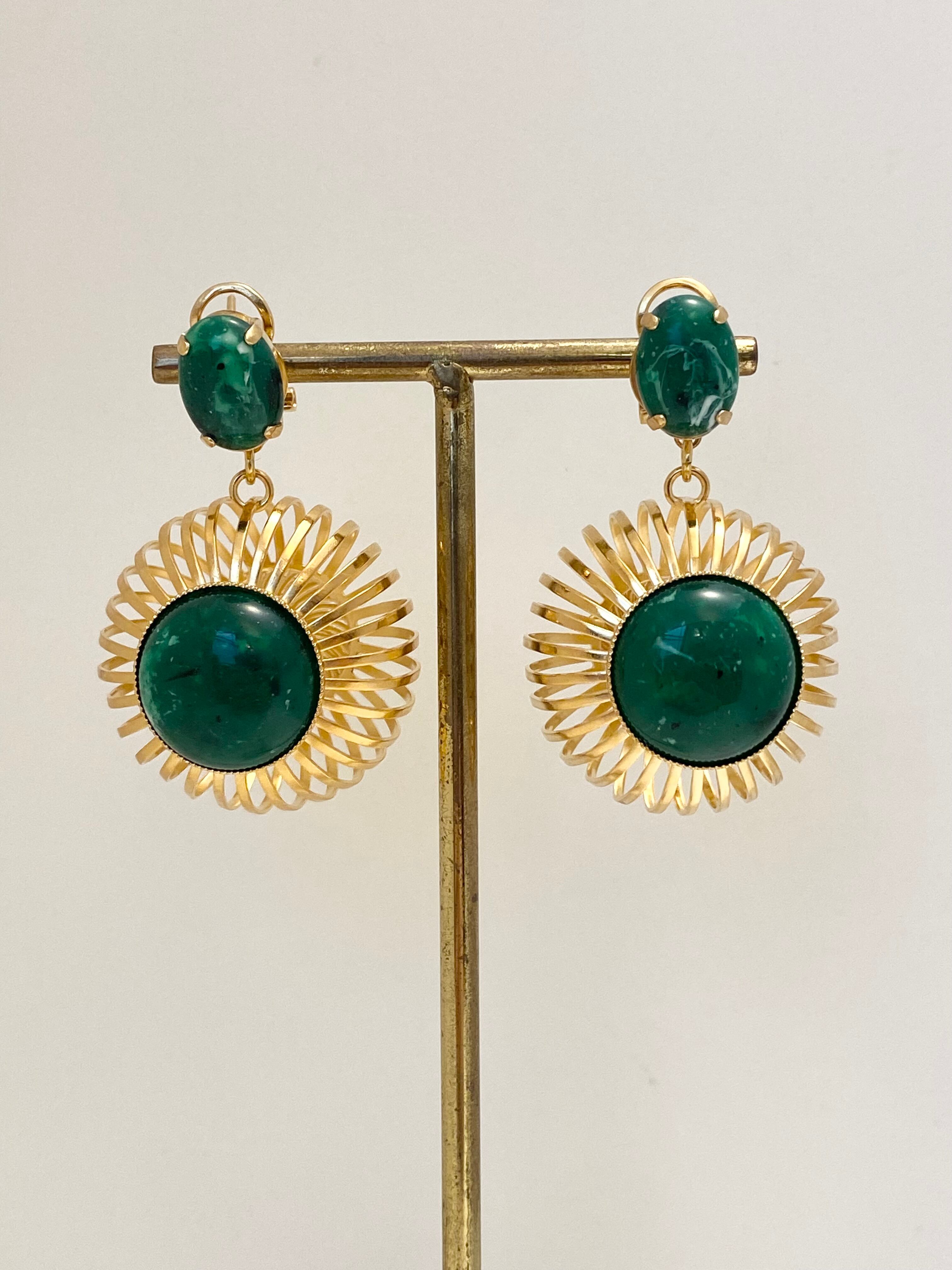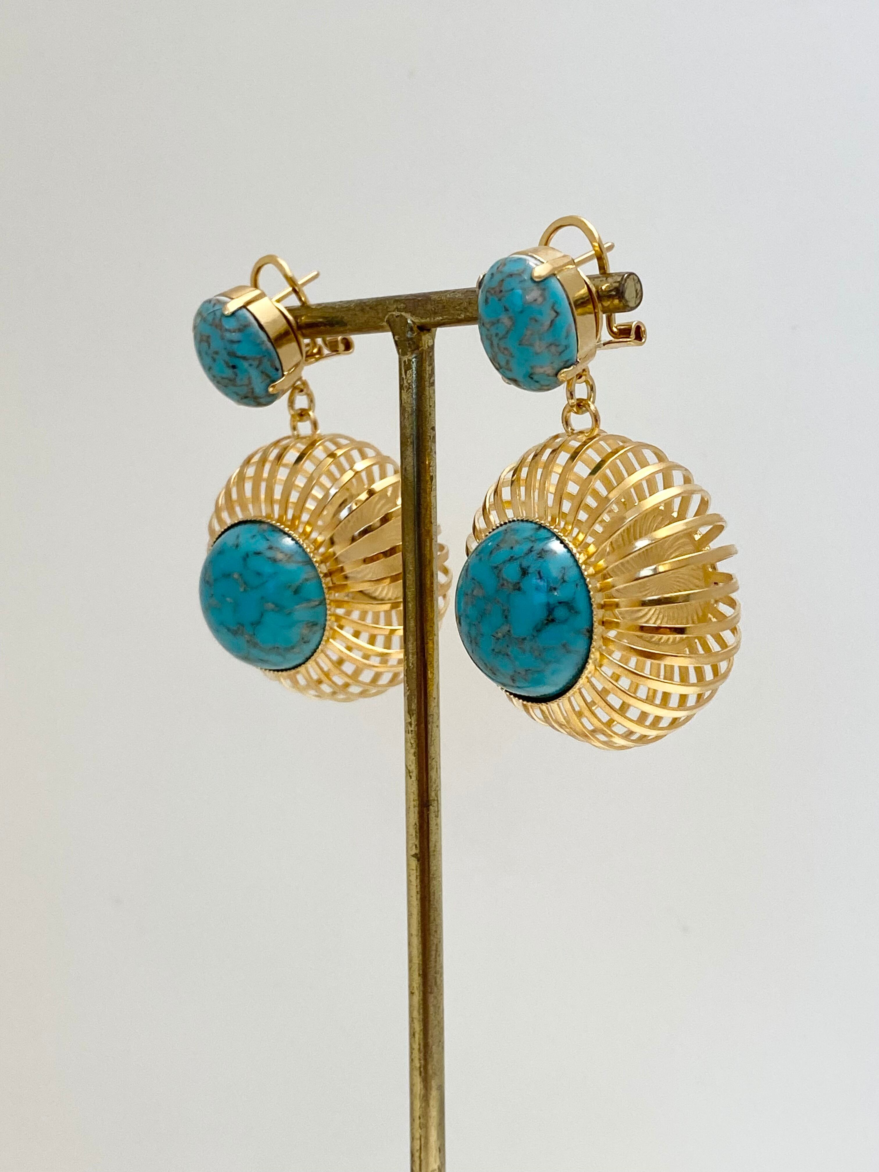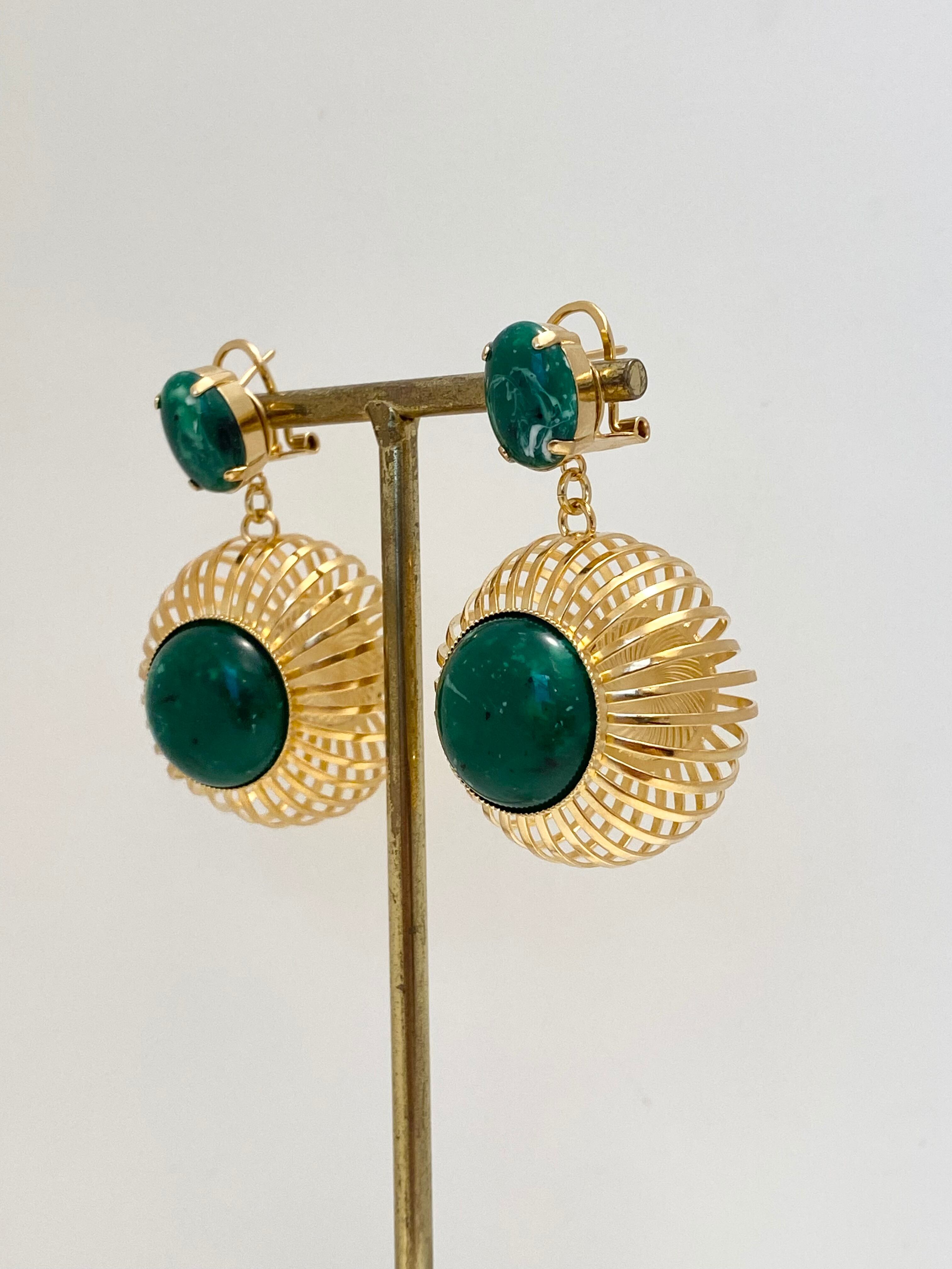 鳥籠のようなふんわり丸いケージのモチーフにカラーストーンを合わせたデザイン。