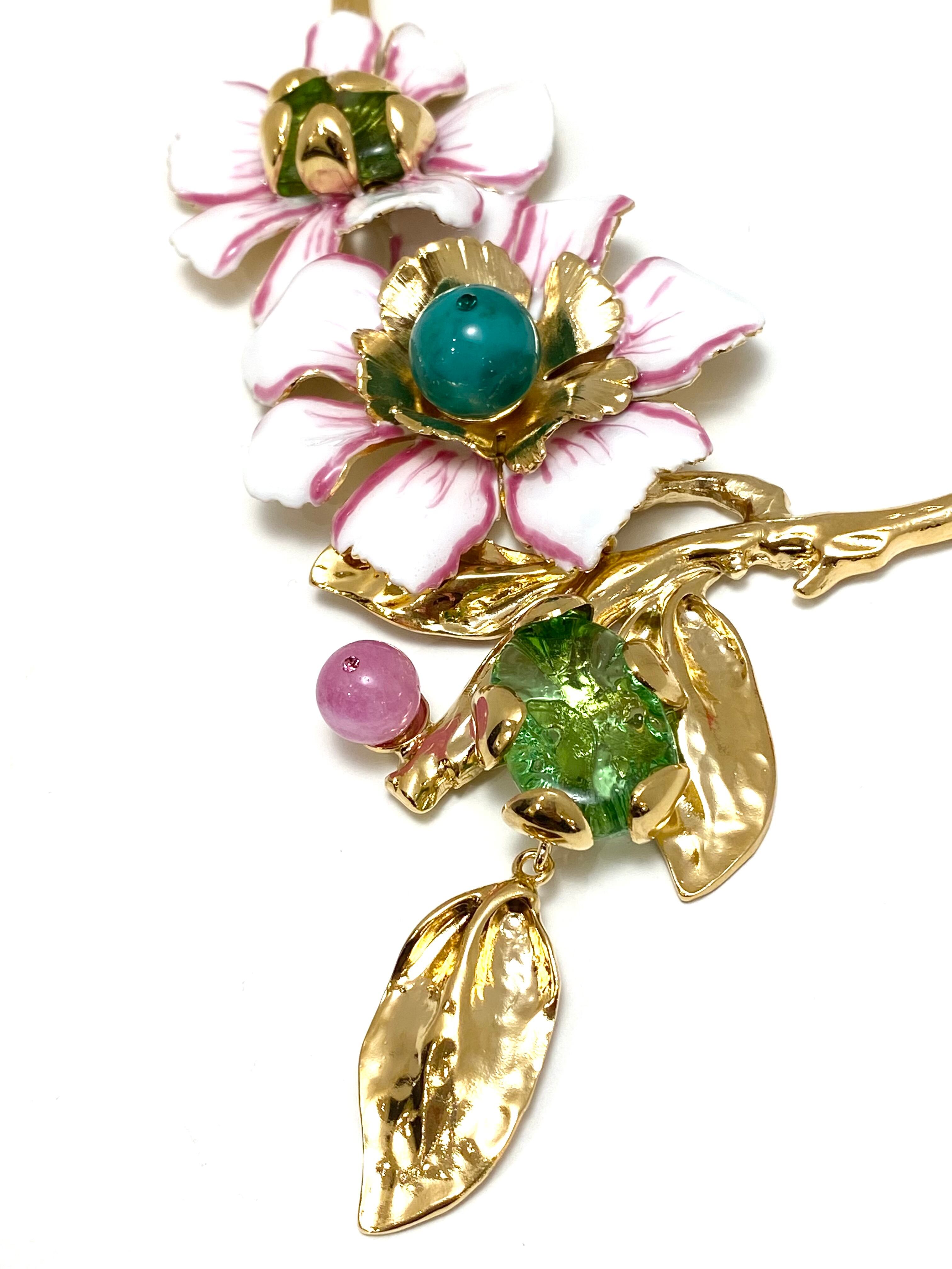 留め具から2つの大きなフラワーモチーフえお通って葉っぱモチーフの先端まで 約29.5cm