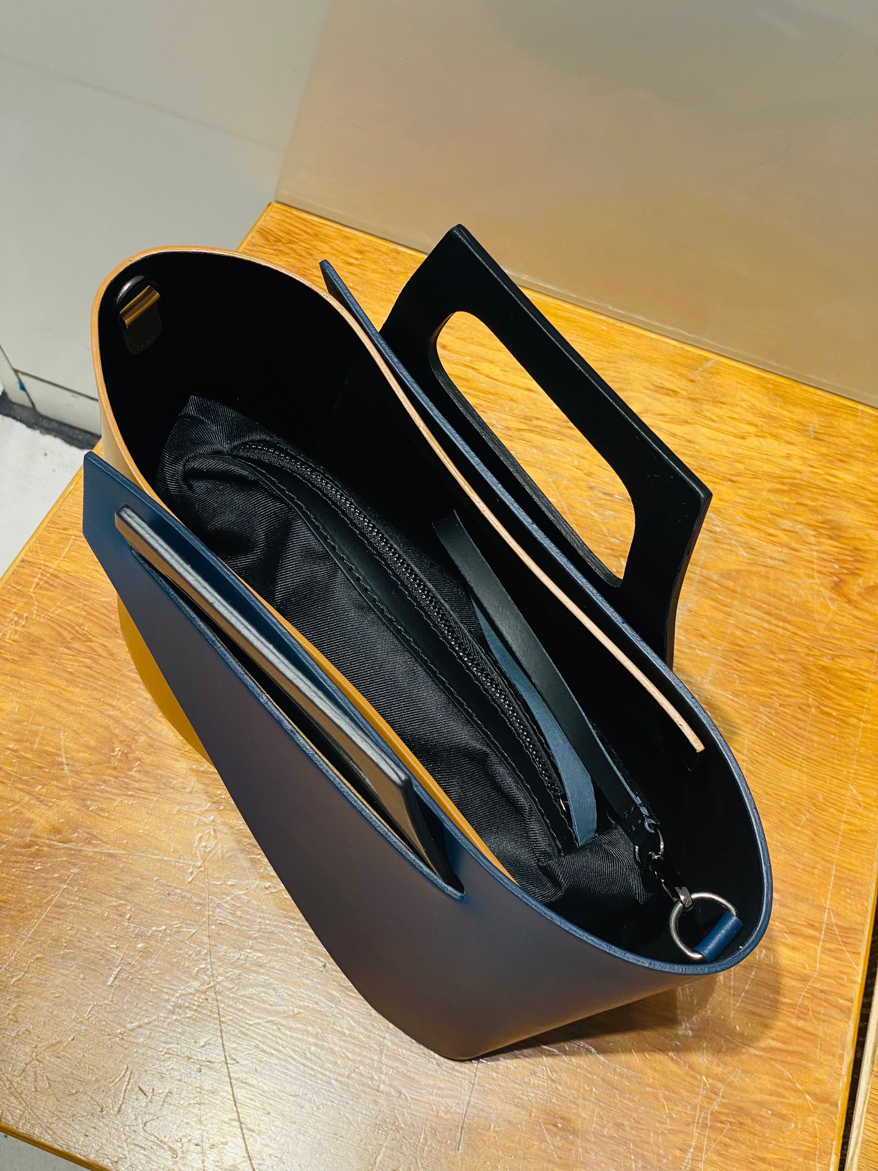 イタリア製 本革 バイカラーレザーバッグ
