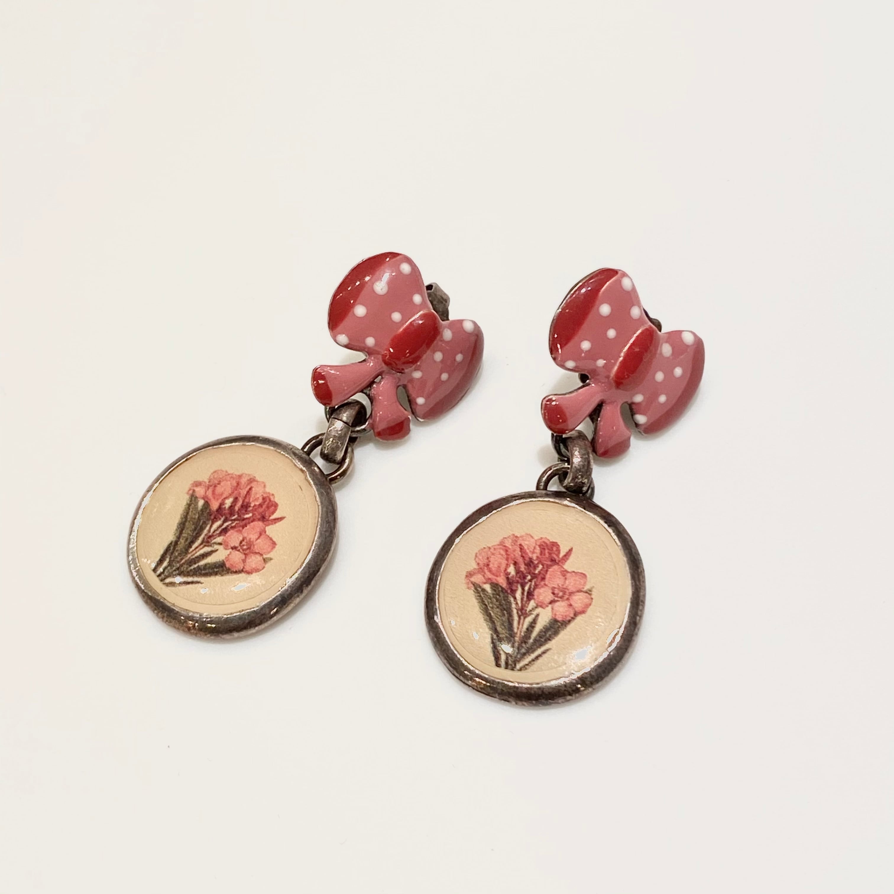 ピンクのお花や水玉のリボンが縦に並んだ、とってもキュートなアイテムです。