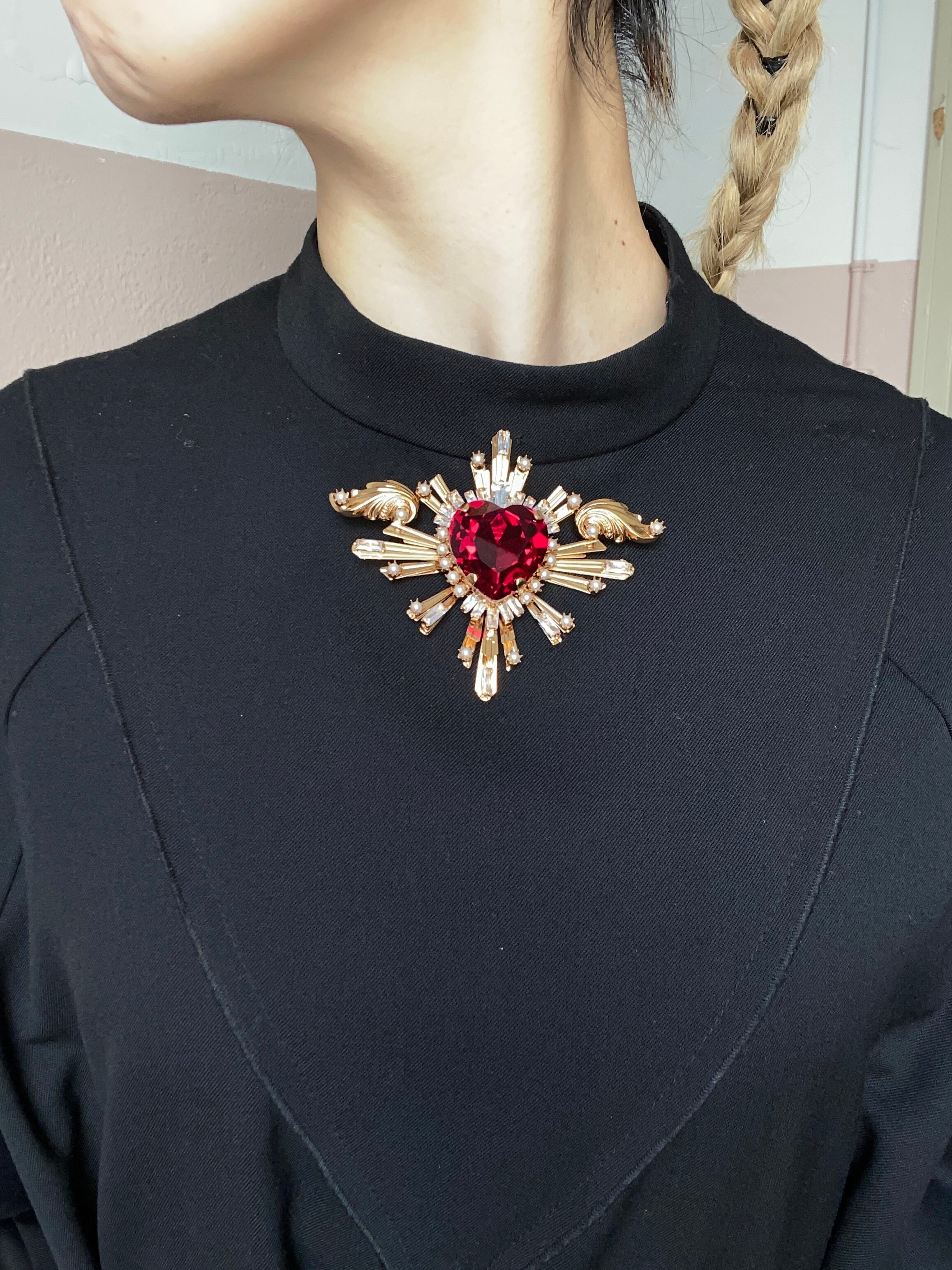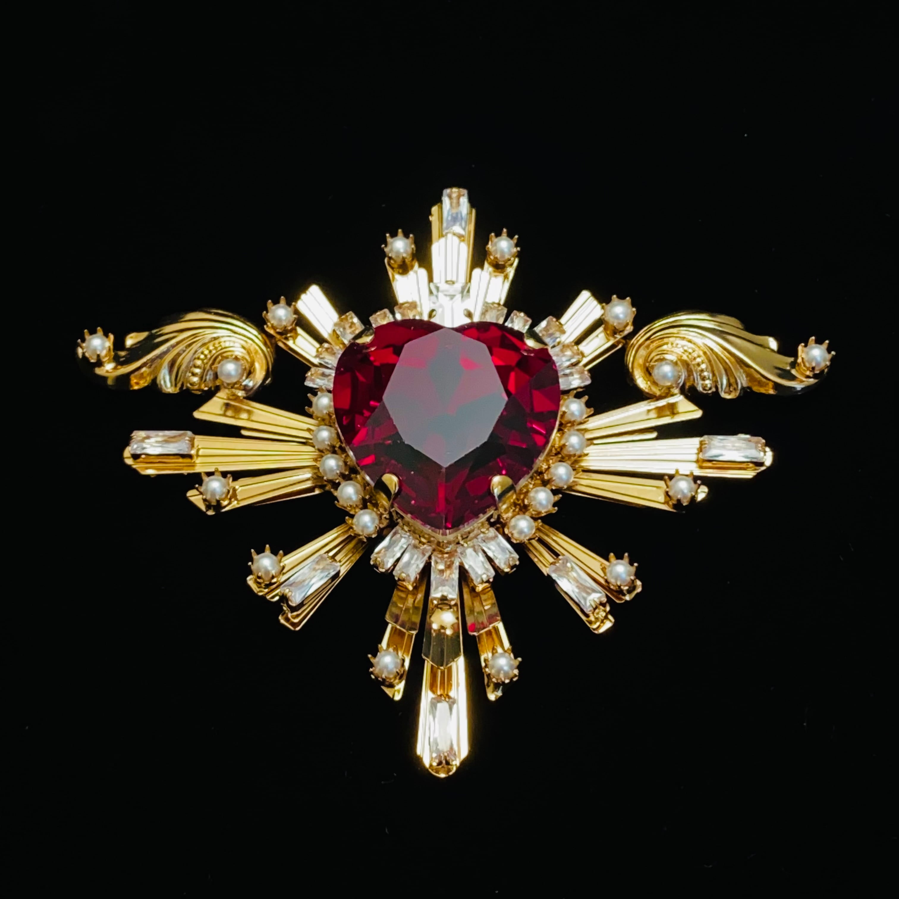 ハート型のスワロフスキーに重なり合う太陽コロナのデザイン、そして天使の羽根。